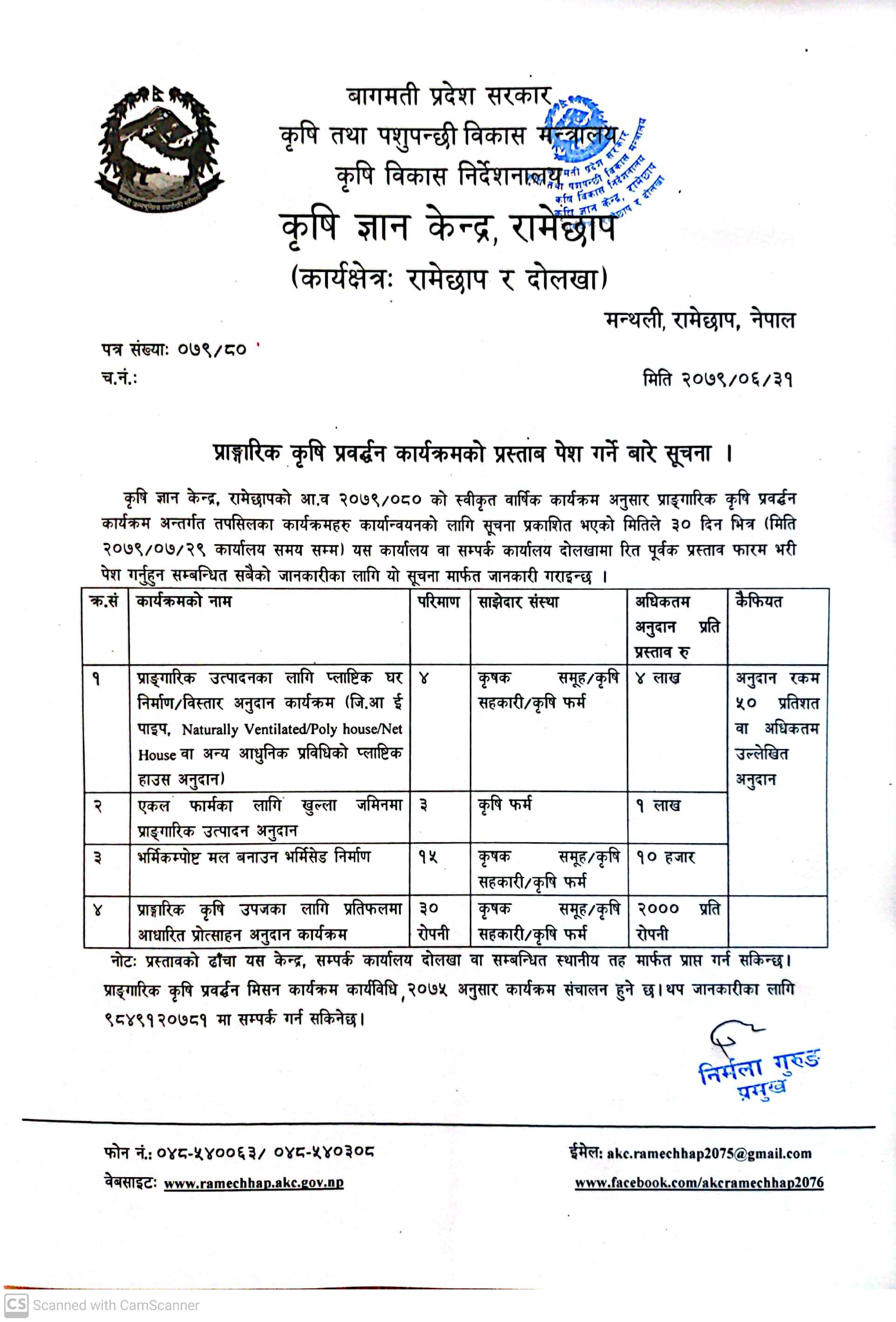 कृषि यन्त्रिकरण तथा प्रवर्द्बन कार्यक्रम 2079-02-04 Closed !!!