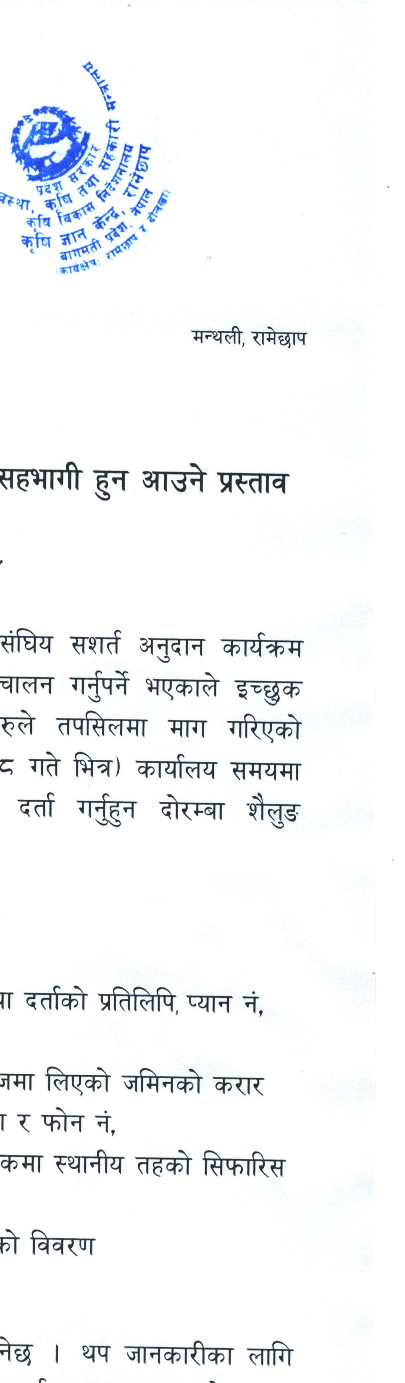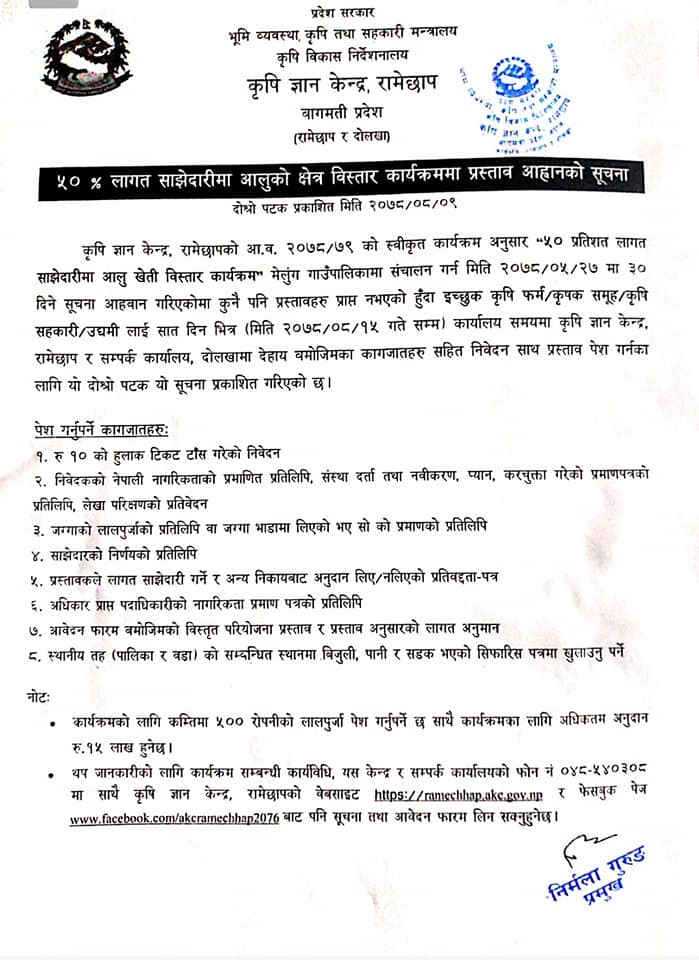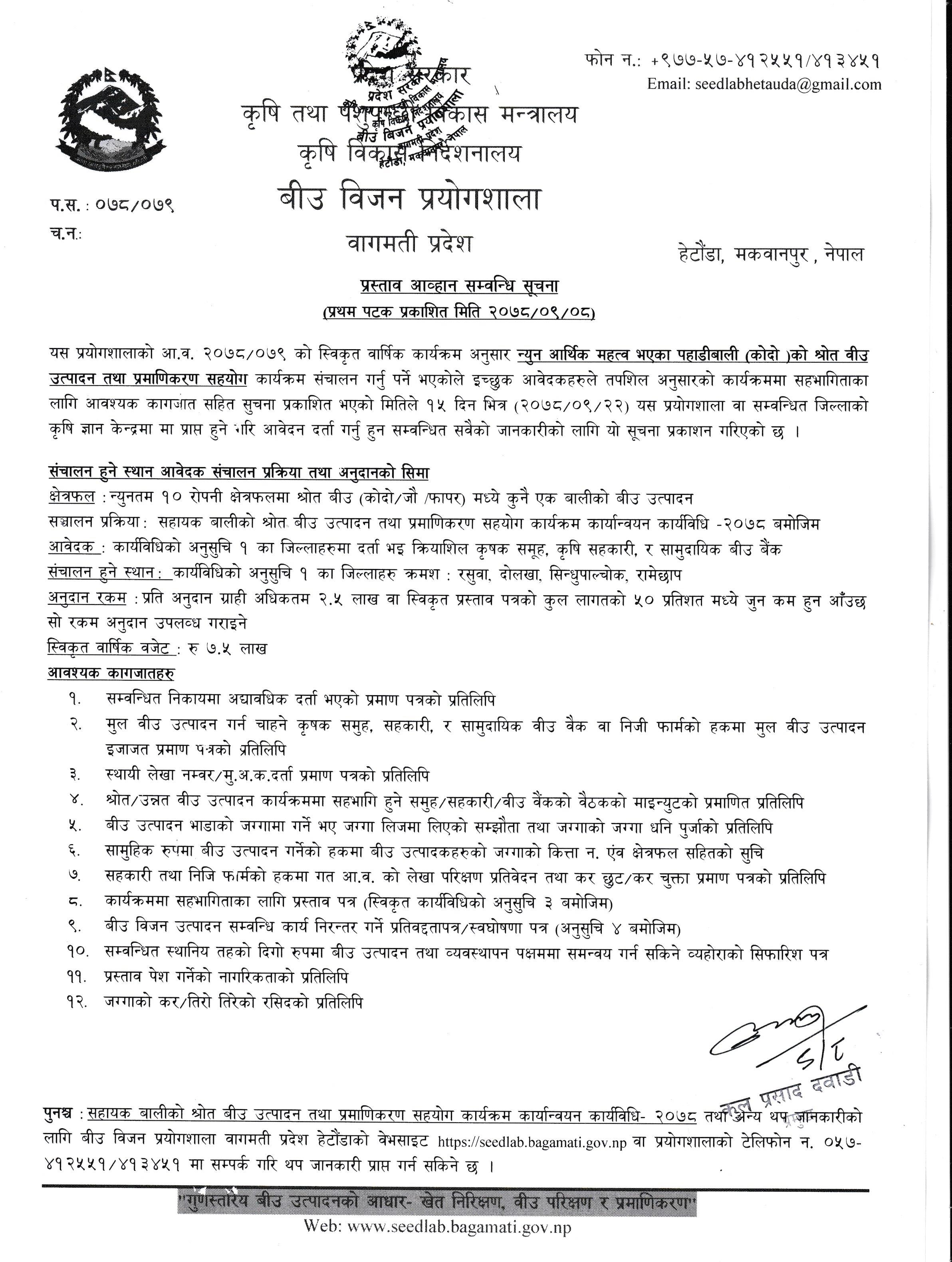 बागमती प्रदेश सरकार कृषि तथा पशुपन्छी विकास मन्त्रालय कृषि विकास निर्देशनालय