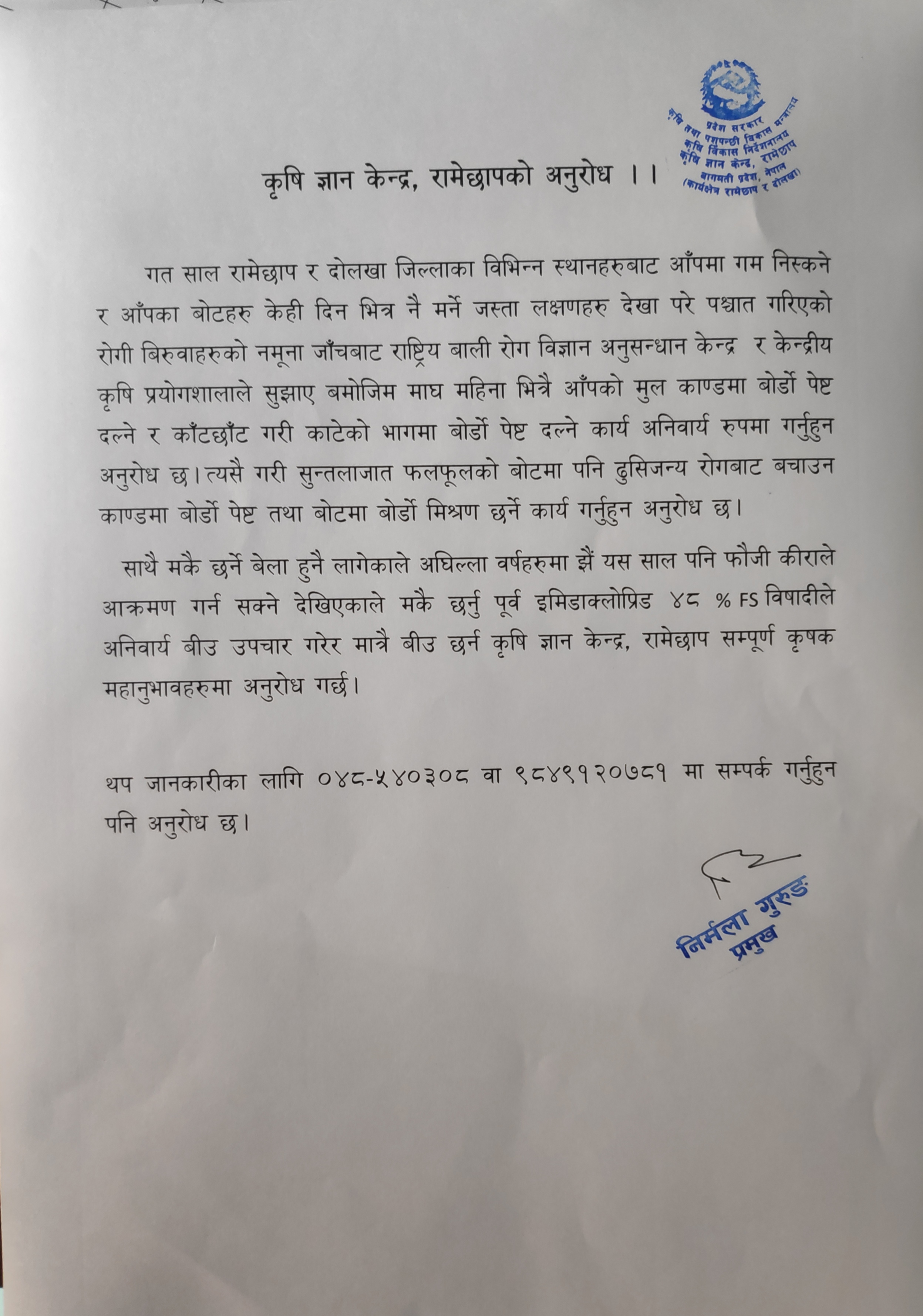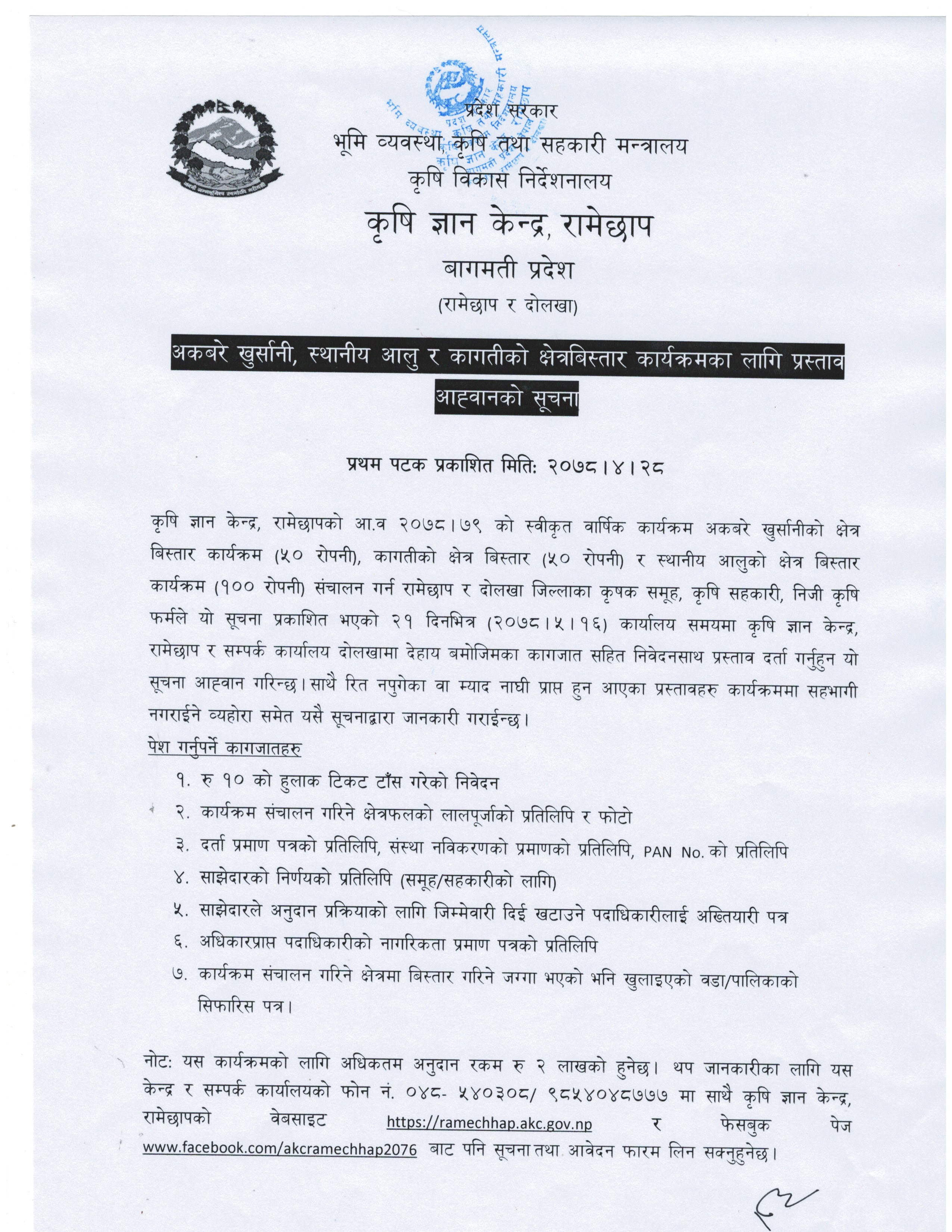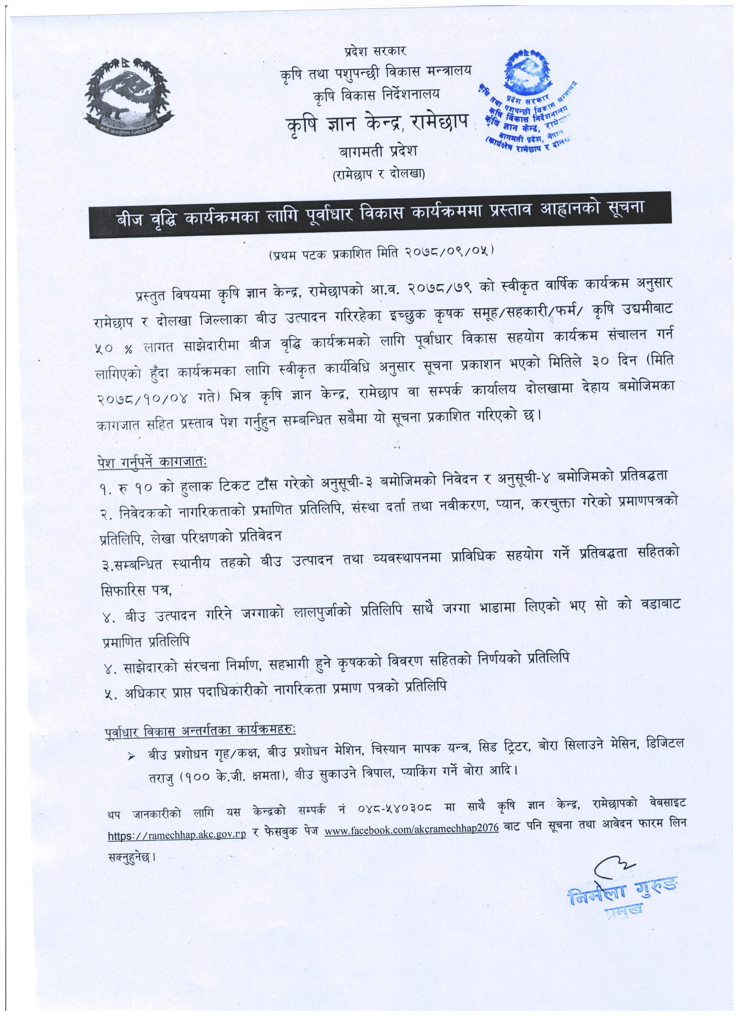 बागमती प्रदेश सरकार कृषि तथा पशुपन्छी विकास मन्त्रालय कृषि विकास निर्देशनालय