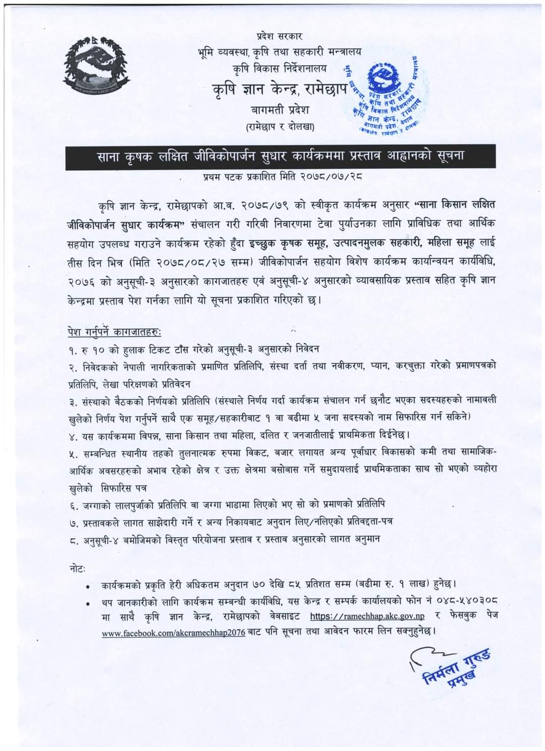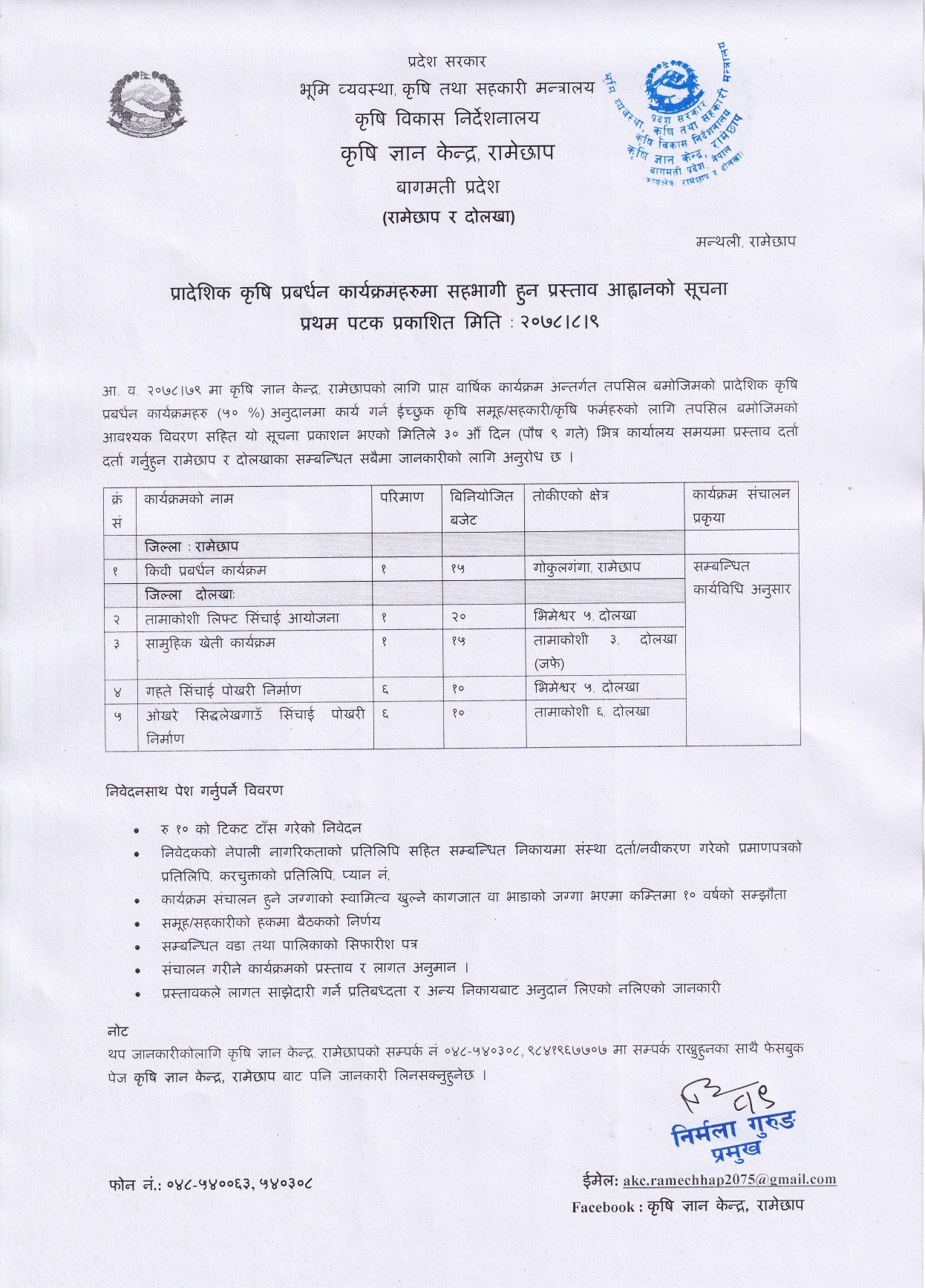 कृषि विकास कार्यालय, रामेछाप